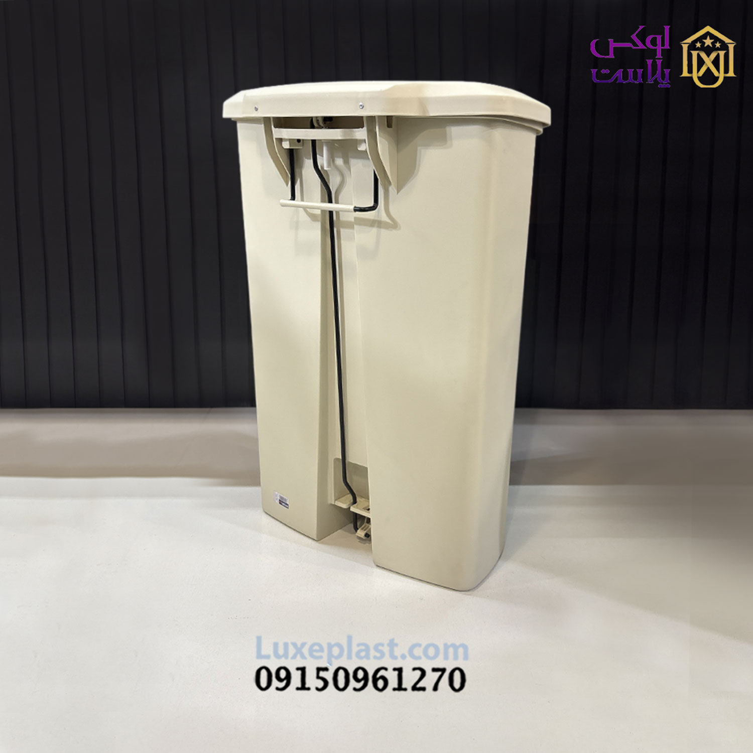 پشت این سطل زباله به صورت صاف طراحی شده تا به آسانی کنار دیوار یا کابینت قرار گیرد و حداقل فضا را اشغال کند . درب آن دارای لولای مناسبی است که مانع از برخورد درب با دیوار و ایجاد خط و خش می شود.