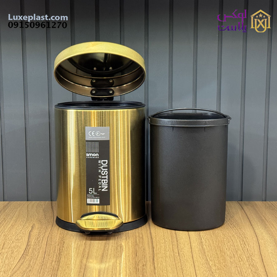 سطل زباله ۵ لیتری تمام استیل دو جداره با درب آرامبند لیمون – شیک و بهداشتی برای فضاهای کوچک